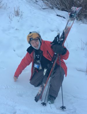 Checking out new snow depth, Day Two, Brighton, UT, is our own Jan Brunvand