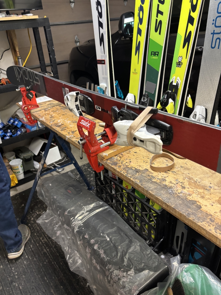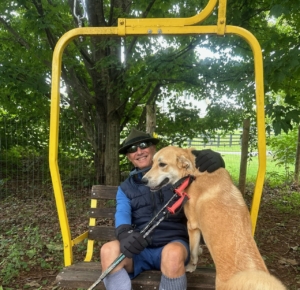 While getting out my ski gear for cleaning and the beginnings of fall workouts, family of course says “dad is crazy!”. It is, after all, August in North Carolina, but at 73 years young, I believe it is never too early to start training and tuning skis and boots. A long time ago I got to work out with members of the U.S. Alpine Ski team {I worked in sales and product development for ThorLo, which was team’s official sock} and workouts with those guys and gals taught you how to be ski fit. And I’m getting ready to help volunteer with area Winter Sports Special Olympics, and teaching cross country and downhill skiing to scouts, so I want to ready. Anyway, my bettor half got some ” ham it up” pictures in the old chairlift she bought for me as a backyard swing…pretty cool.
