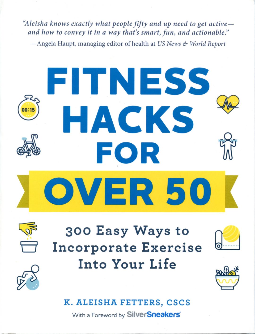 We recently received a brand new book that gives us 300 ways to keep that healthy lifestyle going. Exercise specialist K. Aleisha Fetters’ Fitness Hacks For Over 50 is strike-zone for senior athletes and actives like us.