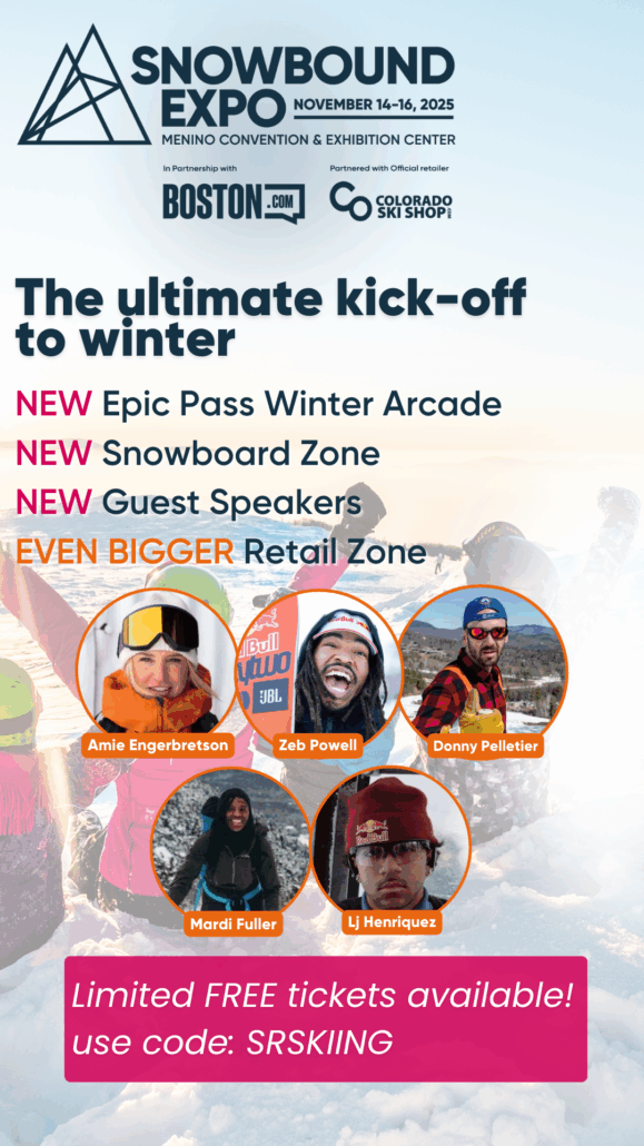 If you’re too late, you can get discounted $10 3-day passes and $5 day tickets using the code SRSKIING10 before September 30th here: https://snowboundexpo.seetickets.com/event/snowbound-expo-2025/menino-convention-exhibition-center/3389718?OfferCode=SRSKIING10