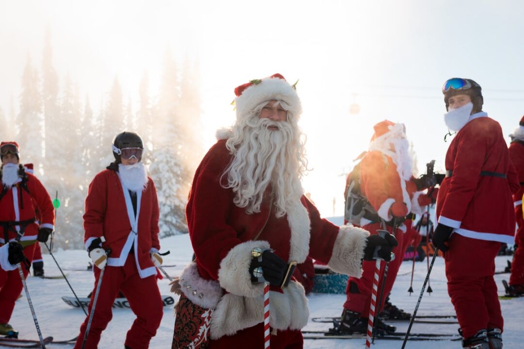 Santa Claus is hitting the slopes! On December 15, 2023 it’s time to hit the slopes, with 100’s of other Mr and Misses Clauses for the annual Ski With Santa Day, also known as Dress Like Santa Day. The first 100 people to arrive in traditional red Santa or Mrs. Claus costumes get free lift tickets. https://gibbonswhistler.com/christmas-holidays-in-whistler/