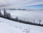 It skis best when untracked, and it doesn’t stay untracked for long. The other day at Grand Targhee in Wyoming, I bought a ticket that gave access to the lifts an hour before opening to the public. The other option would have been pricier cat skiing. As it turned out, eight runs in untracked were more than adequate. Once the others arrived — especially the boarders — the snow got cut up quickly and the skiing, while still nice, was no longer the same. It’s a joy to look down a slope devoid of tracks, to drop in, and have that bottomless experience so difficult to convey to those who haven’t. In your wake is a series of cursive turns that are yours. Warren Miller referred to them as your skiing signature.