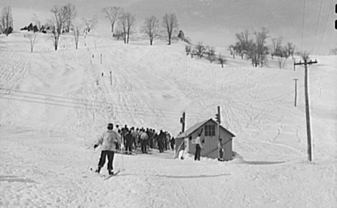 Greg Zoll, of Hillsdale, NJ, was the first reader to correctly identify the image as Gilbert’s Hill in Woodstock, VT. In the 1930s,it was a popular New England ski location. A rope tow, powered by the motor of a Ford Model T truck, was placed on the hill in 1934, making it possible for skiers to quickly get to the top. The hill was used as a ski area until 1965. There’s now a historical marker near the site. Greg, who will receive the new “Licensed To Ski” poster, currently is celebrating his 60th ski season. He was introduced to the sport by his father, a a 10th Mountain Division veteran, who, at one time, held the patent on the Curtiss-Wright Jet-Air compressor used for making snow at New Jersey’s Great Gorge ski area. He’s carried the skiing tradition to his own family and has skied throughout the US, the Alps and in Chile. Congratulations, Greg!