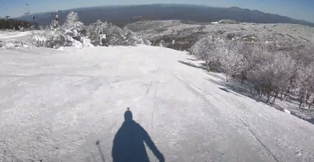 Here’s a run from top to bottom. We found the sound track a bit irritating, so we muted our sound while we watched. We love cruising blues, and this run does it. Easy-peasy. See what southern skiing is like. No, it’s not the Rockies or the Alps, but it is fun for all. It’s from pre-COVID times, so no masks, etc.